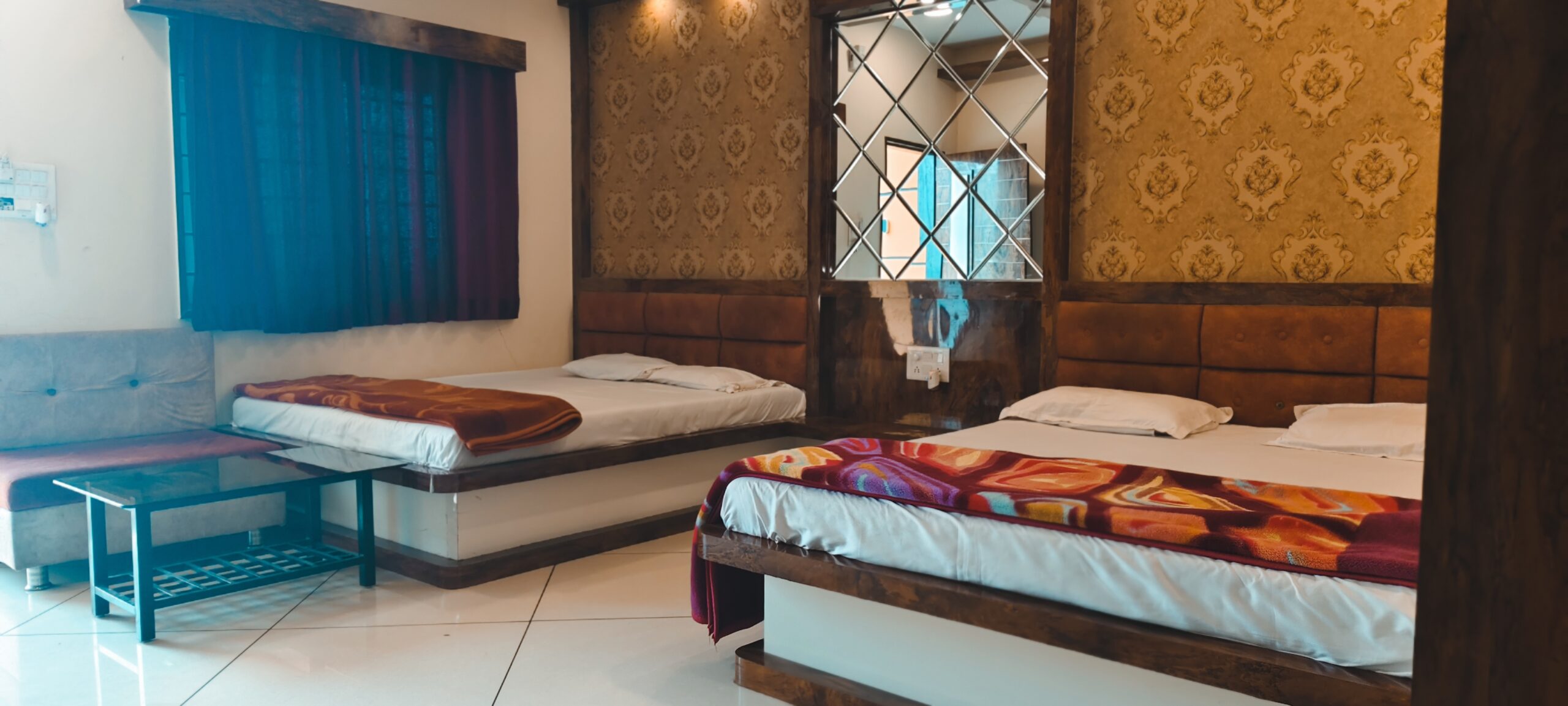We offers a serene and comfortable stay in Omkareshwar, conveniently located near the Omkareshwar Temple. Our property features well-appointed rooms, a vegetarian restaurant, and thoughtful amenities to ensure a relaxing and spiritual experience for guests. Whether visiting for a pilgrimage or a peaceful getaway, we provide a blend of hospitality and tranquility.